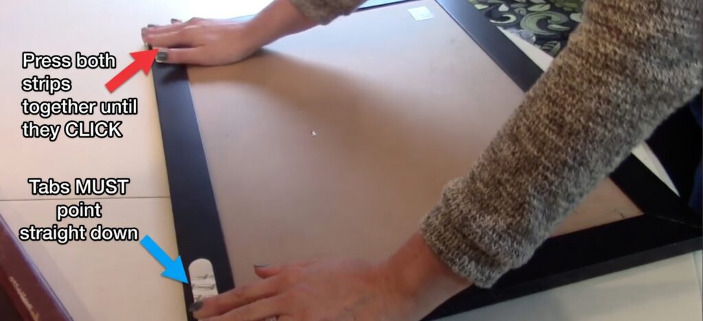 Command Picture Strips work like industrial Velcro. Take two strips and press them together in your hands until you hear them snap and click together.